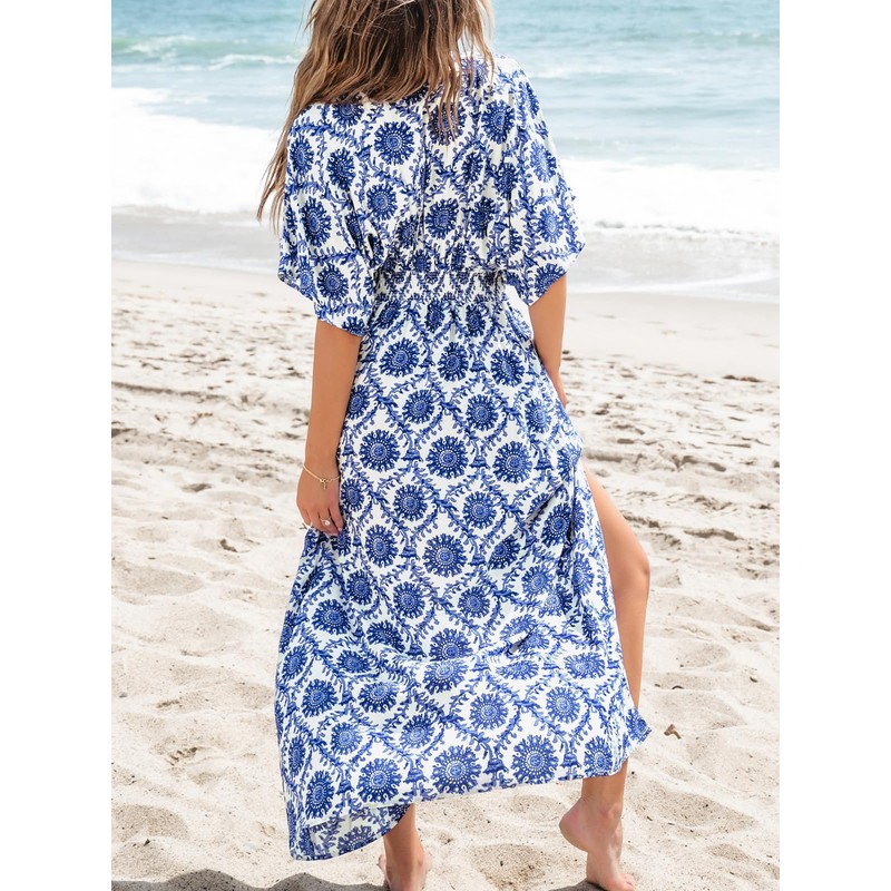 - [Feature]: Summer Dresses for Women 2024 / Cupshe Women Navy Blue Maxi Dress / Boho Beach Dresses / Plunging V Neck Half Dolman Sleeve Dress / Empired Waist Side Split Hem Dresses / Bohemia Vibe