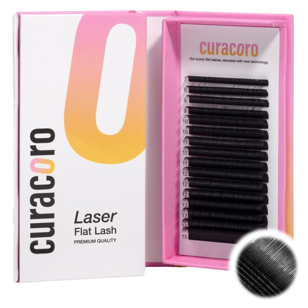Curacoro Laser Flat Lash Extensions – Lightweight & Long-Lasting Flat Lashes with Laser-Enhanced Adhesion | True Black C, CC, D Curl 7–15mm Eyelash Extensions for Professionals
