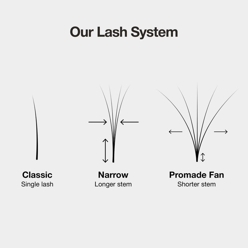 - VERSATILE & CONVENIENT — These LashFolio Narrow Promade Fans are compatible with Curacoro's existing Promade Fans, allowing you to mix and match based on your client's preferences and desired lash look. Both mix lengths and single lengths available provide you with the flexibility to create a customized lash style for each client, while the vegan-friendly and cruelty-free materials allow you to confidently offer your clients stunning lash extensions without compromising your ethical values.