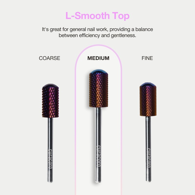 - PREMIUM QUALITY: These Curacoro nail bits are expertly crafted for refining and smoothing acrylic or gel nails, providing a professional finish with ease and efficiency. Large Barrel | Smooth Top Carbide Nail Drill Bits | Grit: Medium | Shank Size: 3/32''