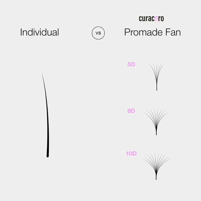 - WHY CURACORO PROMADES — Handcrafted from the finest PBT material, these lashes are soft, sleek, and feature a petite base for easy-peasy application. Loved by lash artists around the globe, our Promade lash fans set the bar high with unmatched quality and performance.