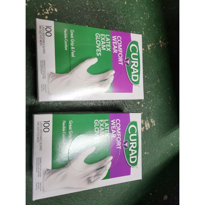 CURAD Comfort Wear Latex Exam Gloves - One Size Fits Most, 2x100 Count