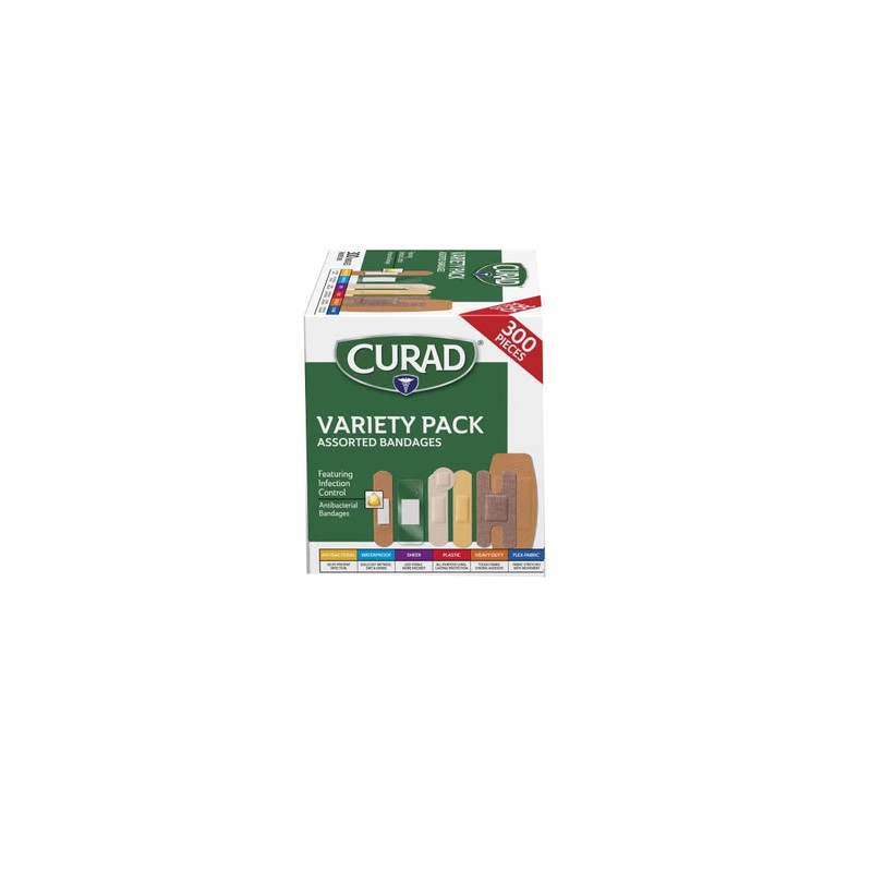 Curad Curad Assorted Bandages Variety Pack 300 Pieces, Including Antibacterial, Heavy Duty, Fabric, and Waterproof Bandages