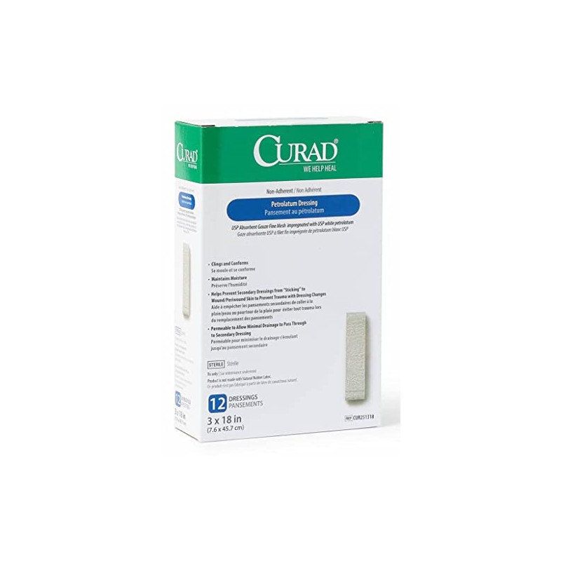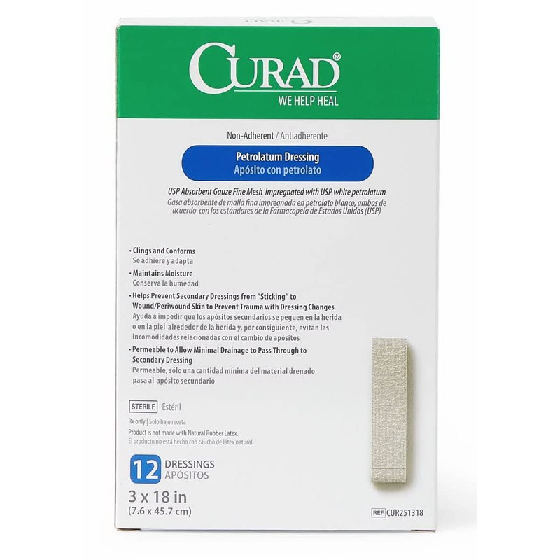 Curad Sterile Latex Free Petrolatum Gauze Dressing, 3" x 18" (Pack of 72)