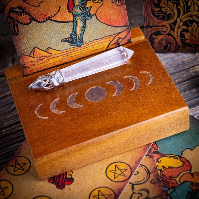 - Moon Phase Laser Marked - The moon and its mystical properties have inspired humankind for generations. The moon phase is expertly laser marked in detail on this tarot card holder. Not only does it add a natural element to the design, but also adds energy to card readings.