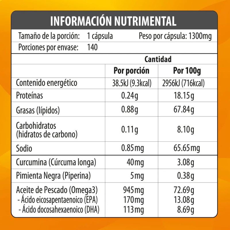 - Modulación Antiinflamatoria Complementaria: Los ácidos grasos EPA y DHA son conocidos por su capacidad para reducir la inflamación sistémica, complementando la acción de la curcumina para un efecto aún más potente y generalizado.