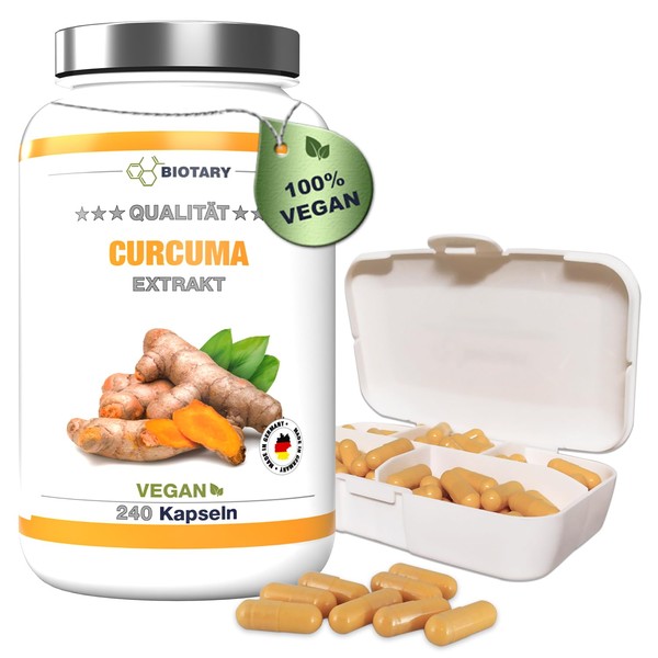 Curcuma Extract - 240 Capsules - Curcumin Content per Daily Serving Equivalent to 17,500 mg Turmeric - 4 Months Supply - Includes Pill Box - High Dose 98% - Vegan - Laboratory Tested