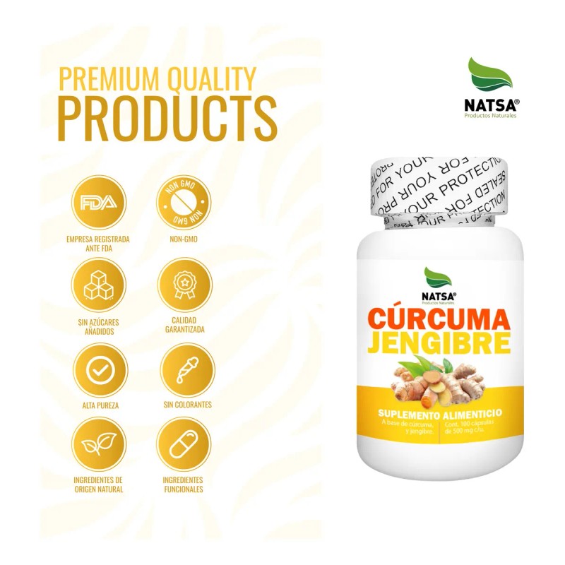 Curcuma Y Jengibre 100 Cápsulas, Calidad Premium Sabor Natural