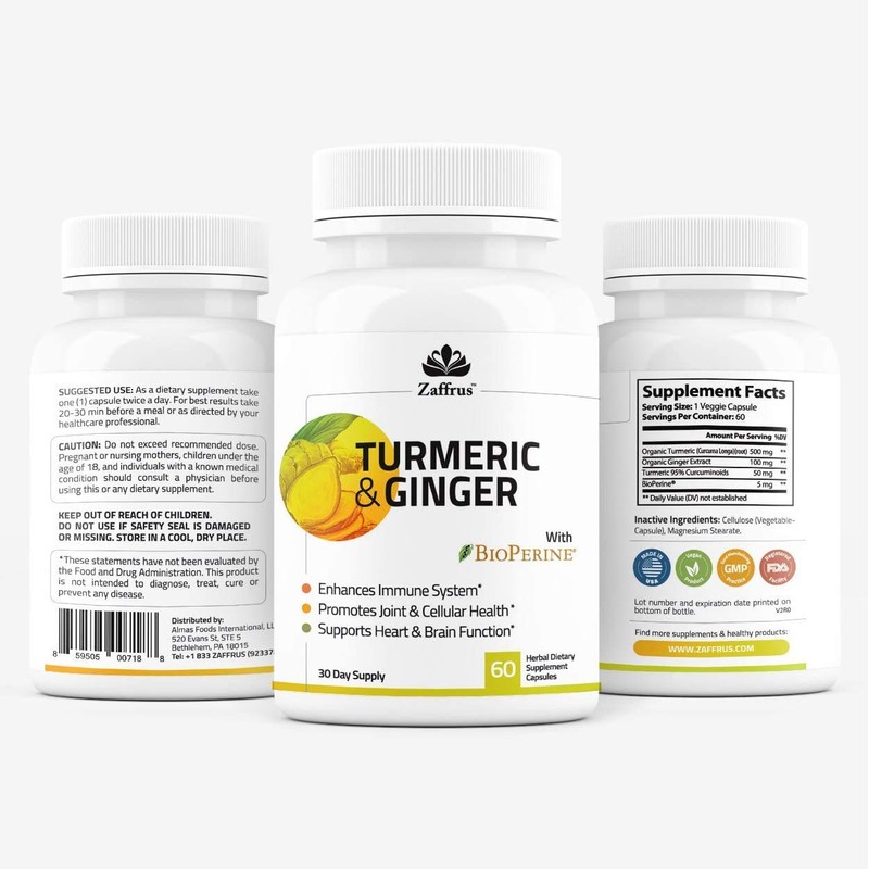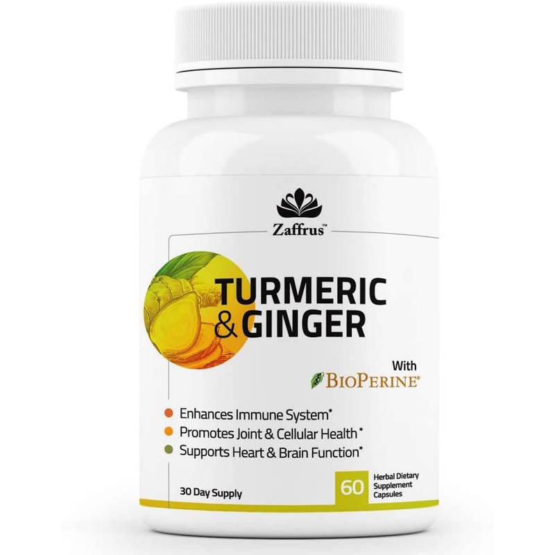 Cúrcuma | Zaffrus | Suplemento de Cúrcuma, Curcumina y Jengibre con BioPerine (Pimienta Negra) | Para Hombres y Mujeres | 60 Cápsulas
