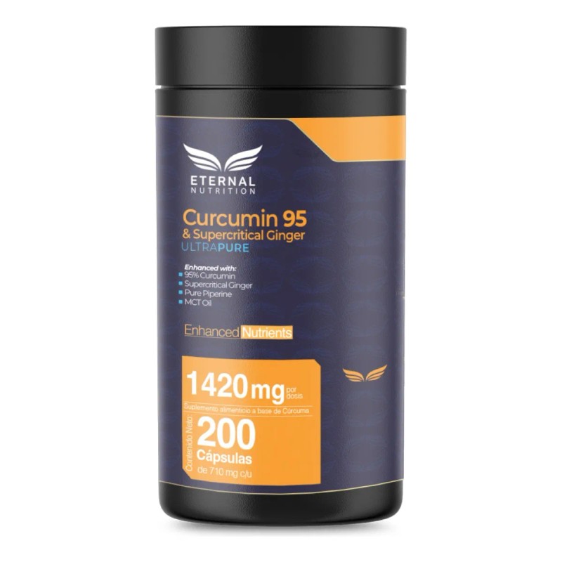 Curcumina 95 + Supercritical Ginger | 200 Cápsulas – 1420mg por Porción | Con Piperina y MCT Oil