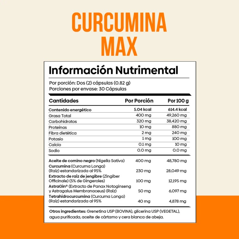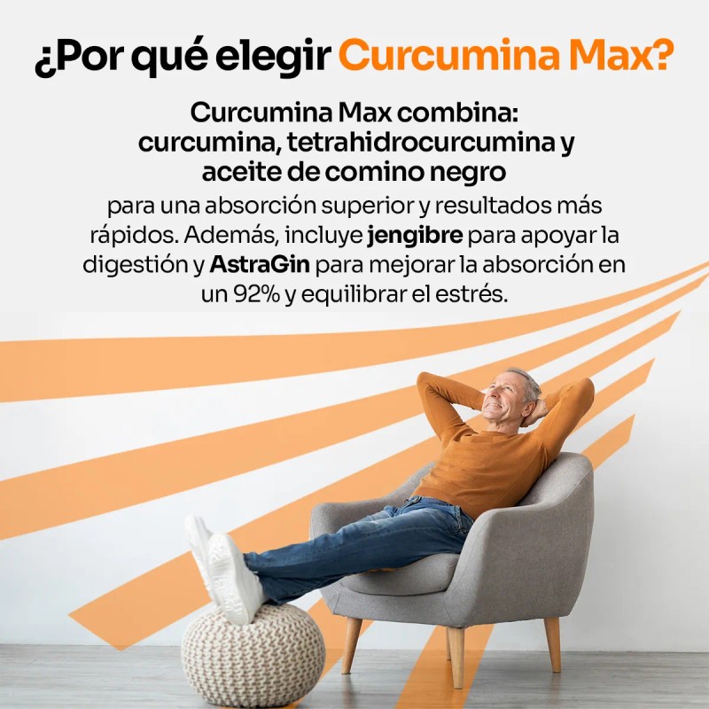 Curcumina Max de Vidalabs México es un suplemento alimenticio natural formulado con extracto concentrado de cúrcuma (Curcuma longa), estandarizado en curcuminoides activos, reconocidos por sus poderosos efectos antiinflamatorios, antioxidantes y protectores celulares. 🧠🔥💪