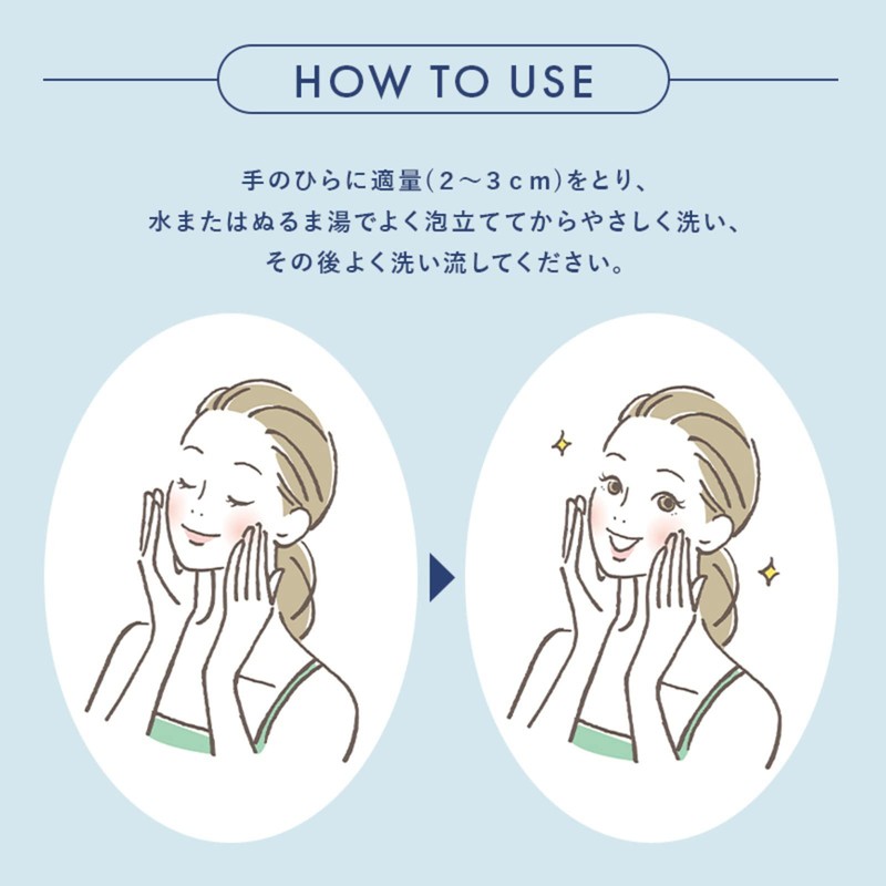 - How to Use: Take an appropriate amount of 0.8 - 1.2 inches (2 - 3 cm) in the palm of your hand, lather well with water or lukewarm water, then gently wash and rinse thoroughly