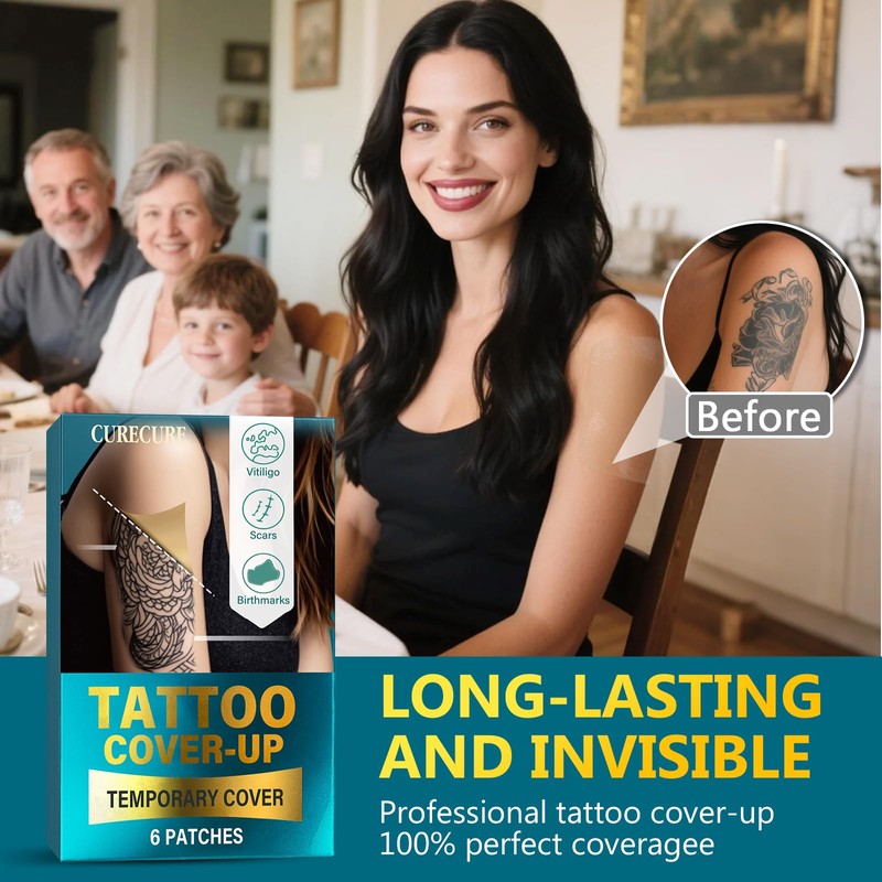 CURECURE Tattoo Cover Up Patch, 6 Pcs Ultra-Thin Waterproof Tattoo Cover Up Tape for Tattoos, Scars and Birthmarks