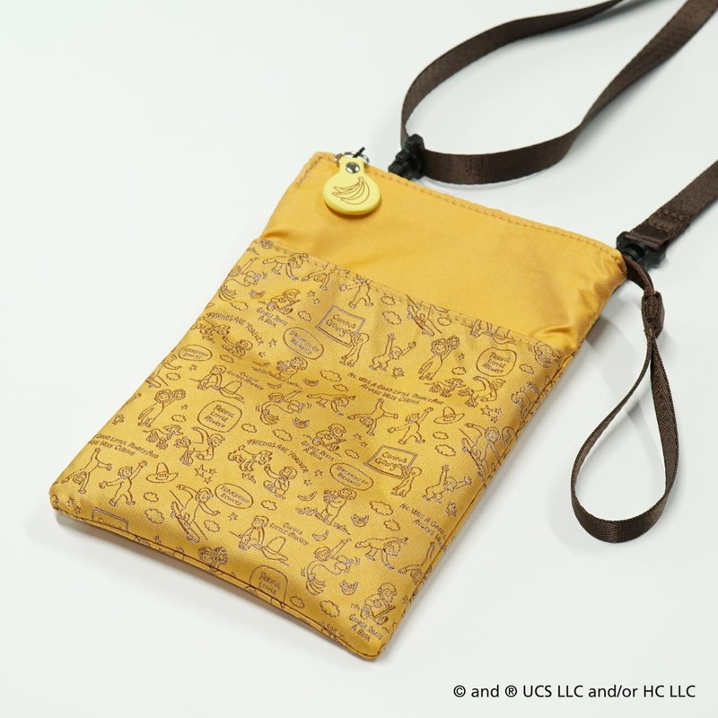 - Curious George / Character Design Sacoche ☆ Sacoche designed with line art that expresses the world of Curious George. The fabric texture and luxury is unique to the fabric. The jacquard looms feature cute patterns of the characters are delicately reproduced. The perfect size for storing your smartphone or glasses, and the front pocket and inner dividers make it convenient to store. The large banana charm makes the zipper open and close. Brown lining The outer fabric is water repellent, so even if it gets light rain or a little water, you can simply wipe it off. Curious George Sacoche combines cuteness and functionality and makes a great gift