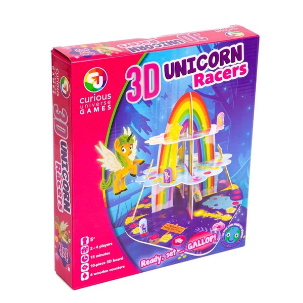 Curious Universe Games | 3D Race Unicorn Racers Board Game | 2 to 4 Players | Ages 5 Years and Above