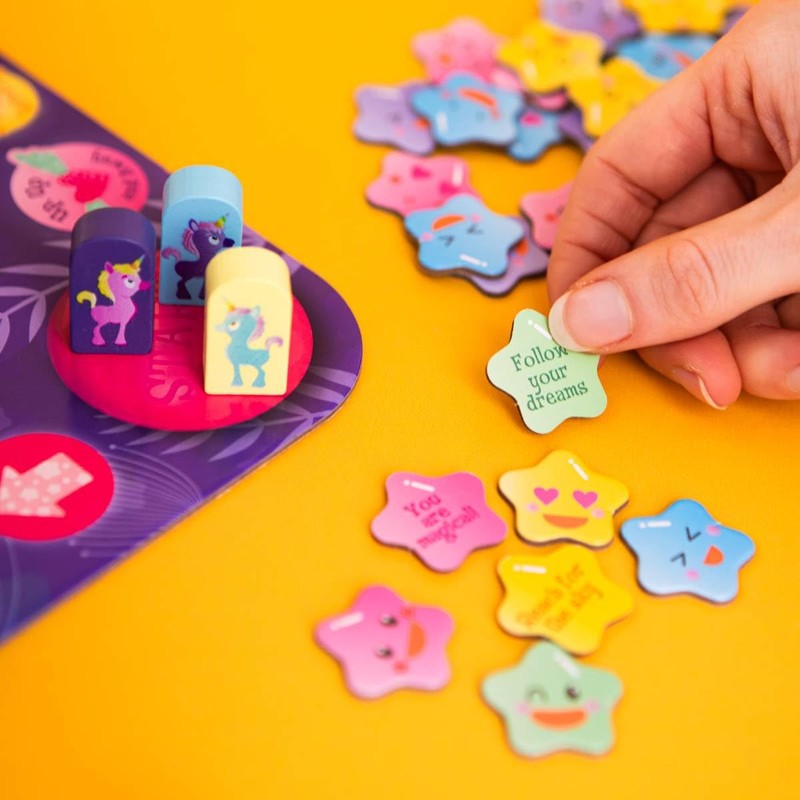 - CONTENTS: 10-piece 3D board plus 36 wishing stars, 4 wooden unicorn counters and a wooden die and an instructional leaflet