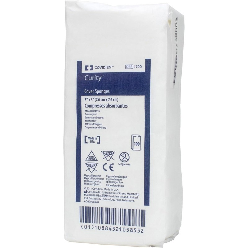 Curity Cover Sponges, 100/Pack, 3”x3”, Non-Sterile, Absorbent, Latex Free, All-Purpose Sponge, White