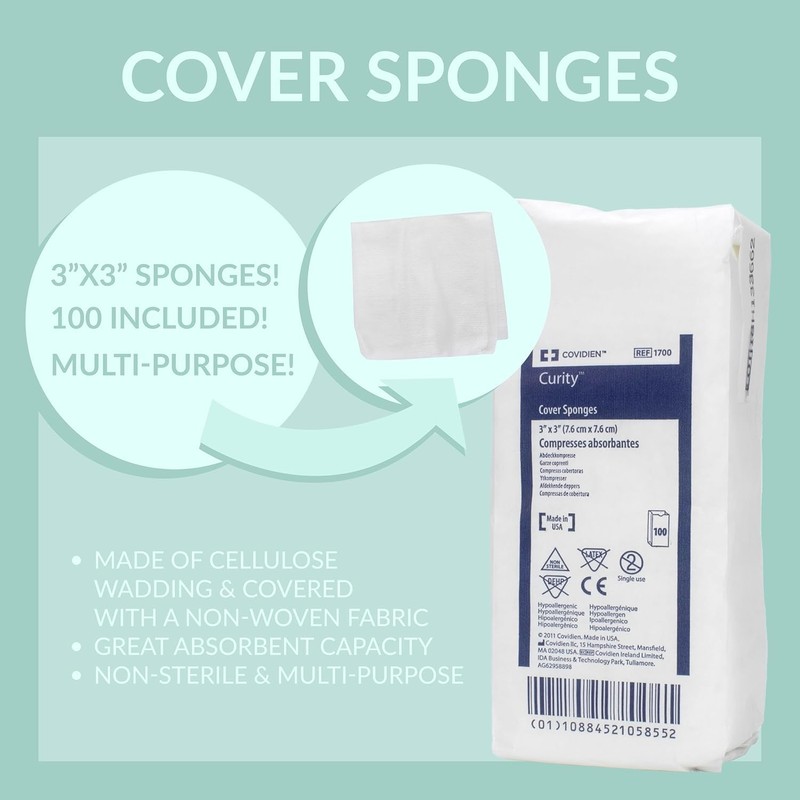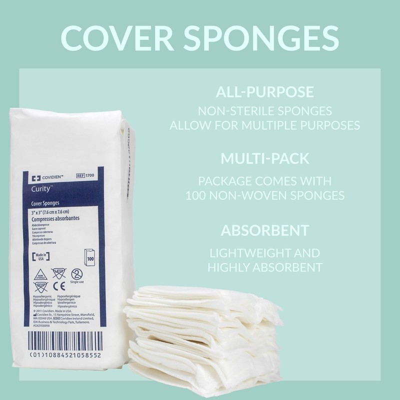 - MULTI-PURPOSE: These cover sponges are non-sterile, allowing use for numerous purposes. The sponge's cellulose wadding allows for good absorption and the non-woven fabric grants a softer, more appealing texture. Each cover sponge is also latex-free.