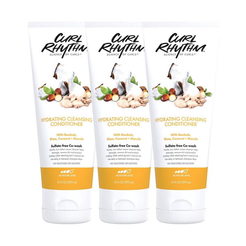 Curl Rhythm Hydrating Cleanser Conditioner - Co-wash with Shea, Marula, and Coconut - Curly Hair Conditioner - Removes Dirt and Buildup - 3 pc