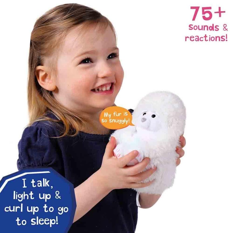 Curlimals Perry Polar Bear Arctic Glow Teddy Bear, Sensory toys, Cute, Plush, Laughing, Light-Up Tummy. Age 3+