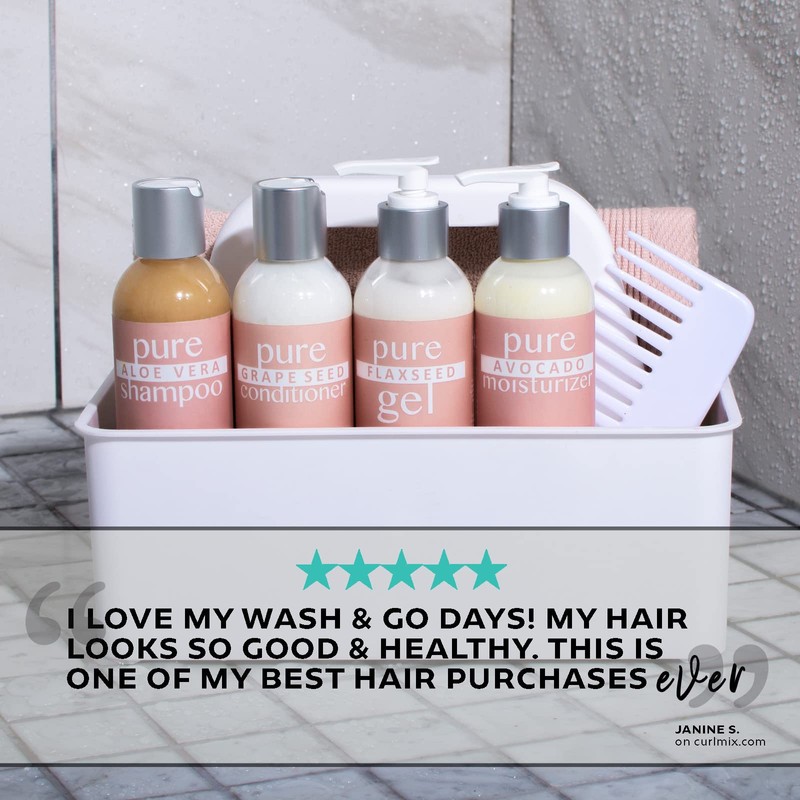- FOUR STEPS TO BETTER CURLS: The CurlMix Wash and Go System is made up of four steps: Clarifying aloe vera shampoo, hydrating grape seed conditioner, curly hair moisturizer with avocado oil, and a defining flaxseed gel.