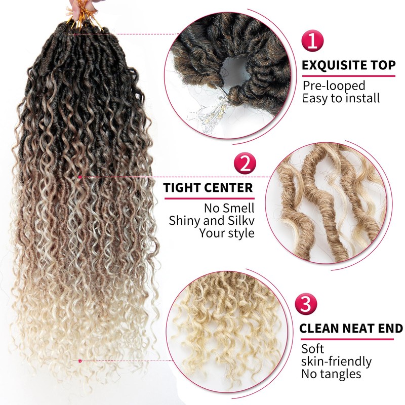 - 1.Material: Synthetic Hair Extensions,New Goddess Locs Crochet Hair Braid Extension With Deep Curly In Middle And Ends.
