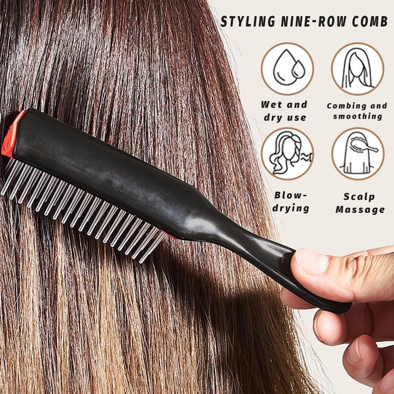 - Unique nine-row design: curling brush has nine rows of comb teeth that can touch the hair in a large area and quickly comb out matted hair.