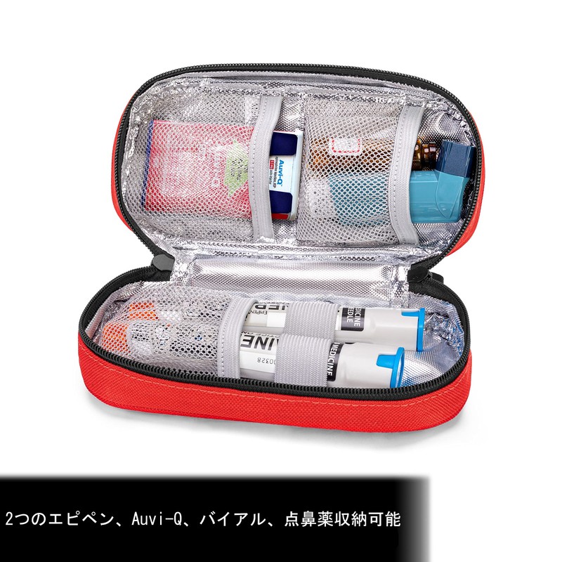 CURMIO エピペンケース 2つのエピペン、Auvi-Q、バイアル、点鼻スプレー 携帯用 家庭 旅行 レッド