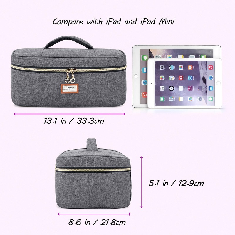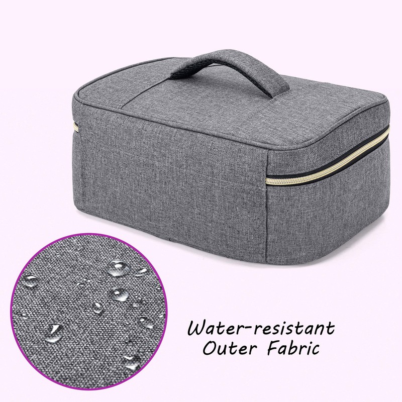 - Easy to carry: 33 x 21.6 x 12.7 cm. Good design make the cosmetic bag stronger, and the top padded handle makes it easy to carry. Large opening with two-way zip for easy access to the item.
