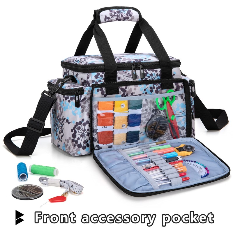- LARGE CAPACITY: The main compartment is spacious enough to hold spools of sewing thread and other accessories. 2 removable dividers separate the main compartment into 3 parts to easily classify different kinds of sewing supplies. (Bag only, NOT includes sewing accessories.)