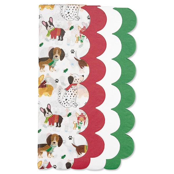 Current Doggies Scalloped Edge Tissue Paper Sheets - Christmas and Holiday Present-Wrapping, Bulk, Variety, 24 Sheets of Assorted Tissue Paper, 19 x 25”