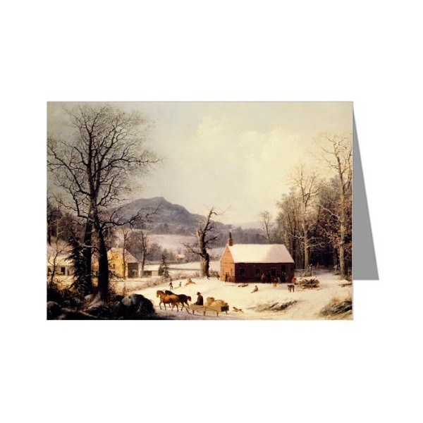 Currier and Ives Holiday Red School House Note Card set