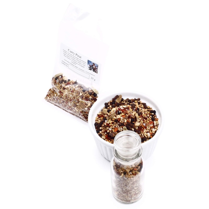 Curry Pirat | indische Gewürzmischung für Mühle | grobes Curry-Gewürz groß in Premium-Qualität | unbehandelt & glutenfrei | 25g