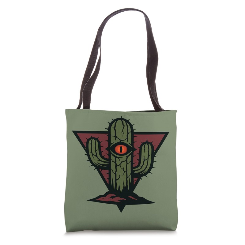 - Haunting cactus design with a red eye brings eerie desert vibes to life. A bold and unsettling visual for horror fans and lovers of weird art.