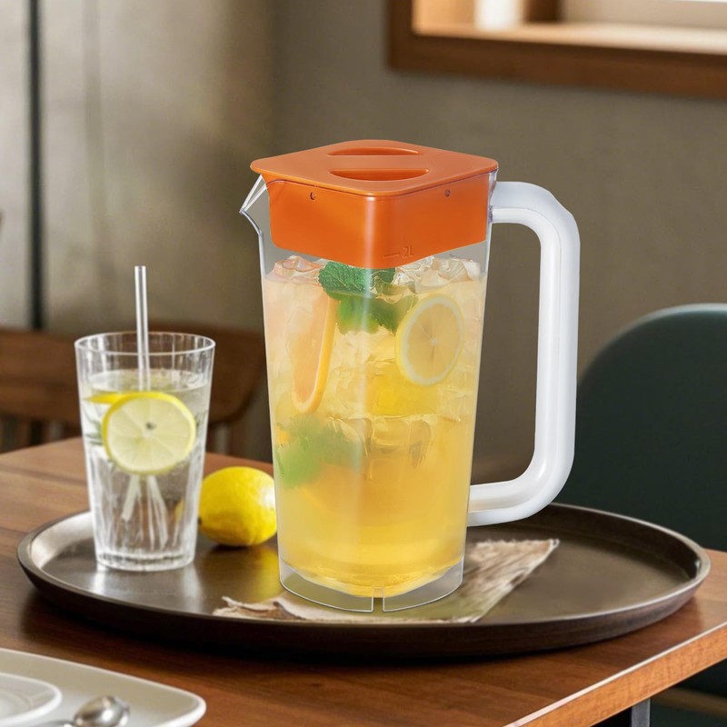 - This water pitcher also has a 2-liter (0.5-gallon) capacity, making it ideal for a variety of business events, kitchen routines, milk, juice, lemonade, fruit tea, and hot and cold tea.