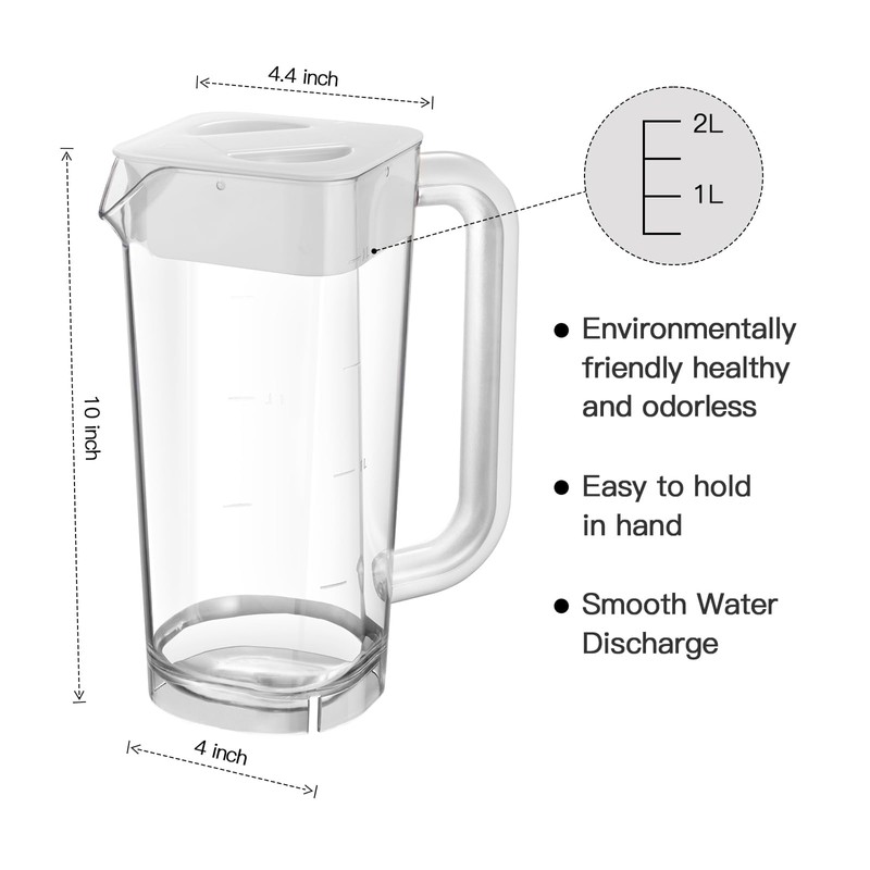 - This Plastic Pitcher with lid is shatterproof, drop-proof, and has a sturdy handle and stable base that can withstand a lot of wear and tear for safety and durability.