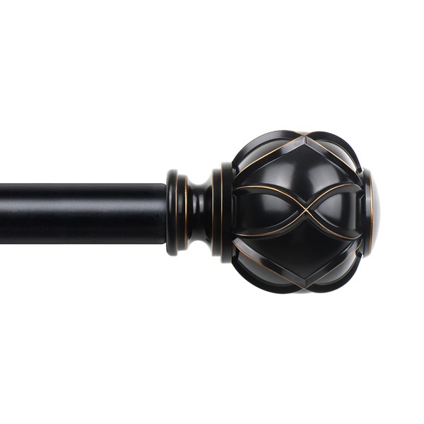 Curtain Rod 32 to 58 Inch, HOTOZON Heavy Duty Curtain Rods for Windows, Telescoping Single Drapery Rod with Netted Texture Finials, Black