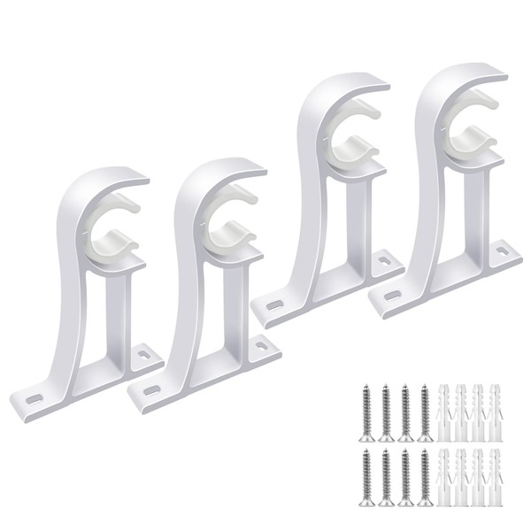 Curtain Rod Holder, Curtain Rod Bracket, Set of 4 Rod Brackets, White, Heavy Duty, Curtain Holders, Hooks for Wall Curtain Brackets for 3.5 cm Curtain Rod