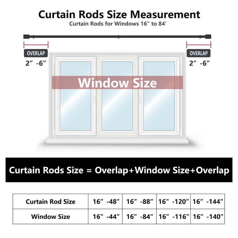 - Flexible Length: This curtain rod for windows is 0.6mm thick and 1-inch in diameter. It can be extended from 16 to 88 inches or up to 100 inches. The curtain rod brackets are adjustable from 3.54 to 4.7 inches. You can adjust the length of the curtain rod to fit your home.