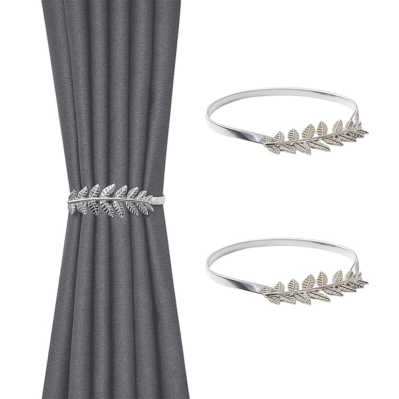 Curtain Tiebacks, Metal Leaves Curtain Holdbacks Adjustable Curtain Straps Curtain Clips for Home Bedroom Window Decoration (2 Pcs, Silver)