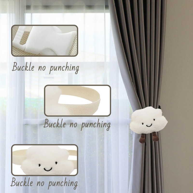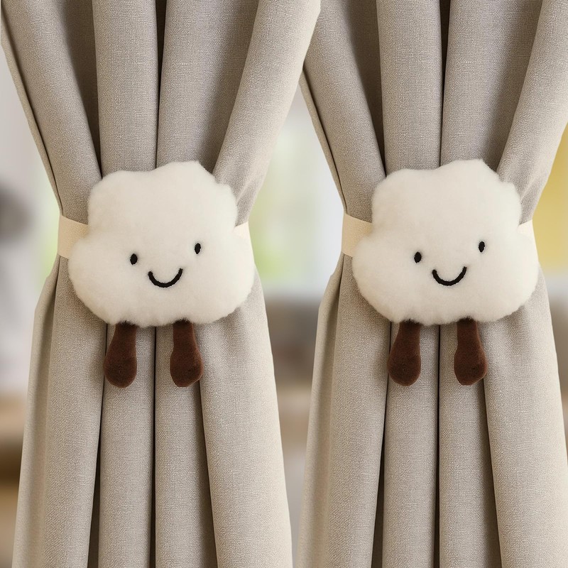Curtain Tiebacks, Set of 2 White Curtain Tie Backs, White Tie Backs for Curtains, Elegant Curtain Holdbacks for Living Room and Bedroom, With Cute Cloud Decoration