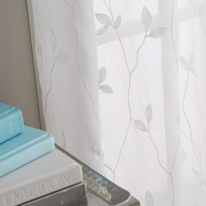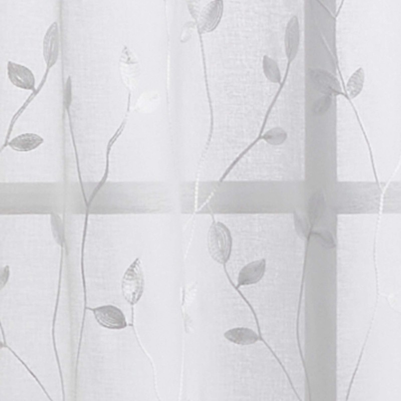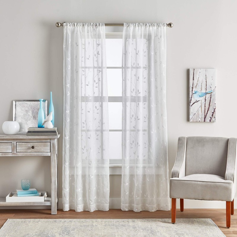Curtainworks Botanical Embroidery Sheer Window Curtain Collection, Rod Pocket, 63-inch Panel Pair, White