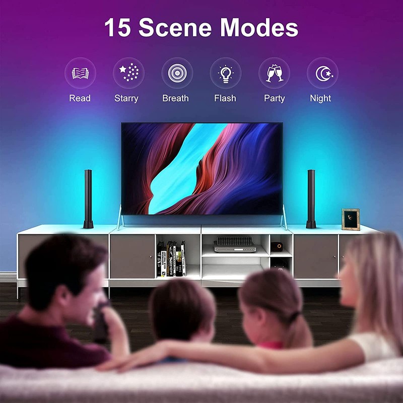 • Multiple Scene Modes and Memory Function: The gaming led lights has 6 natural scenes(Read/Get up/Night/Starry/Party/Film) and 9 scene modes(each mode can be customized in 6 colors). Each mode displays different colors and light effects to meet your different daily lighting needs, after opening the flow light bar, the rgb tube light will restore the rgb light you set last time, no need to adjust it again.