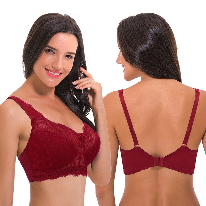A diferencia de otros brasieres para pechos grandes, el hermoso diseño no se ha sacrificado aquí Hecho de 88% tela de microfibra de nailon con 12% elastano para libertad de movimiento, los brasieres complementan tus curvas como ningún otro. La parte delantera de cada brasier de cobertura completa cuenta con un impresionante bordado de encaje en un patrón floral junto con bordes delicados para un aspecto femenino. El brasier de encaje de talla grande combinará con cualquier atuendo, desde separados casuales hasta glamorosa ropa de noche, acentuando perfectamente tus gloriosas curvas y dando a tu cuerpo esa forma de sueño.
