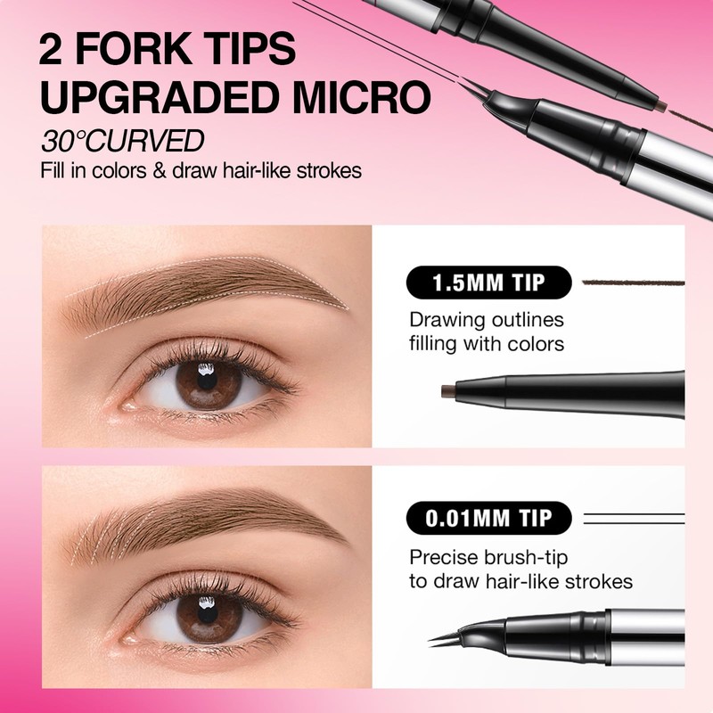 • 【LIKE REAL NATURAL Eyebrows】This eyebrow pen adopts upgraded micro-fork tip to produce smooth and more beautiful and accurate hair strokes, making eyebrows vivid and 3D natural eyebrows like real eyebrows