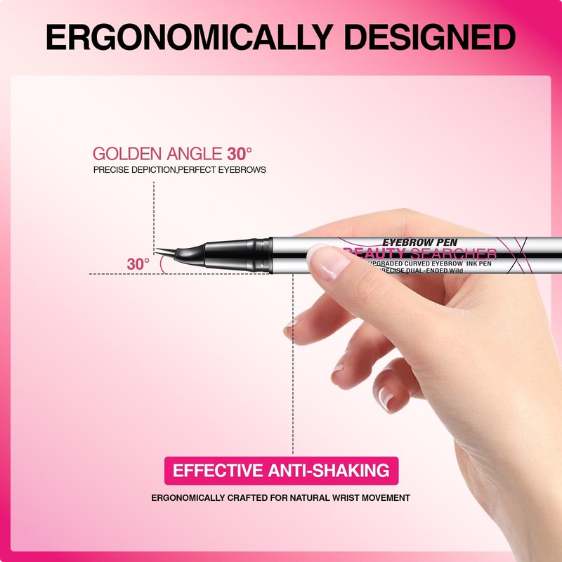 Curved Eyebrow Pen, 2-in-1 Dual Ended Eyebrow Pencil, Microblading Eyebrow Pe...