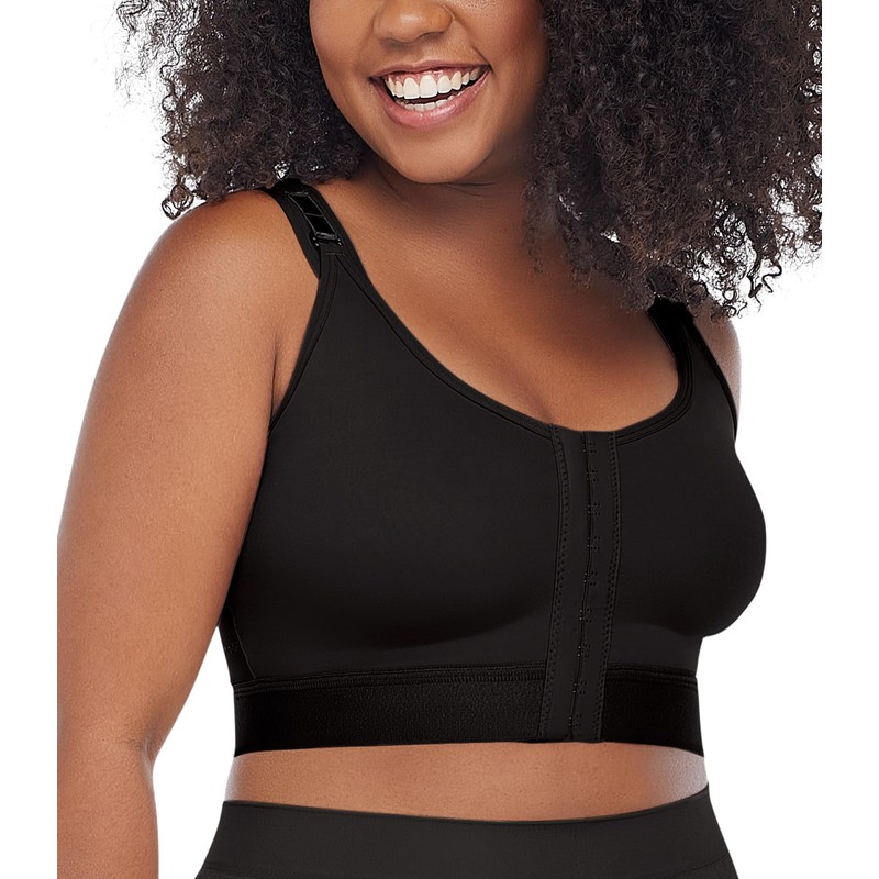 CURVEEZ Post-Surgery Front Closure Wireless Bra, Compression Shapewear Top with Wide Straps for Breast Augmentation Recovery Black