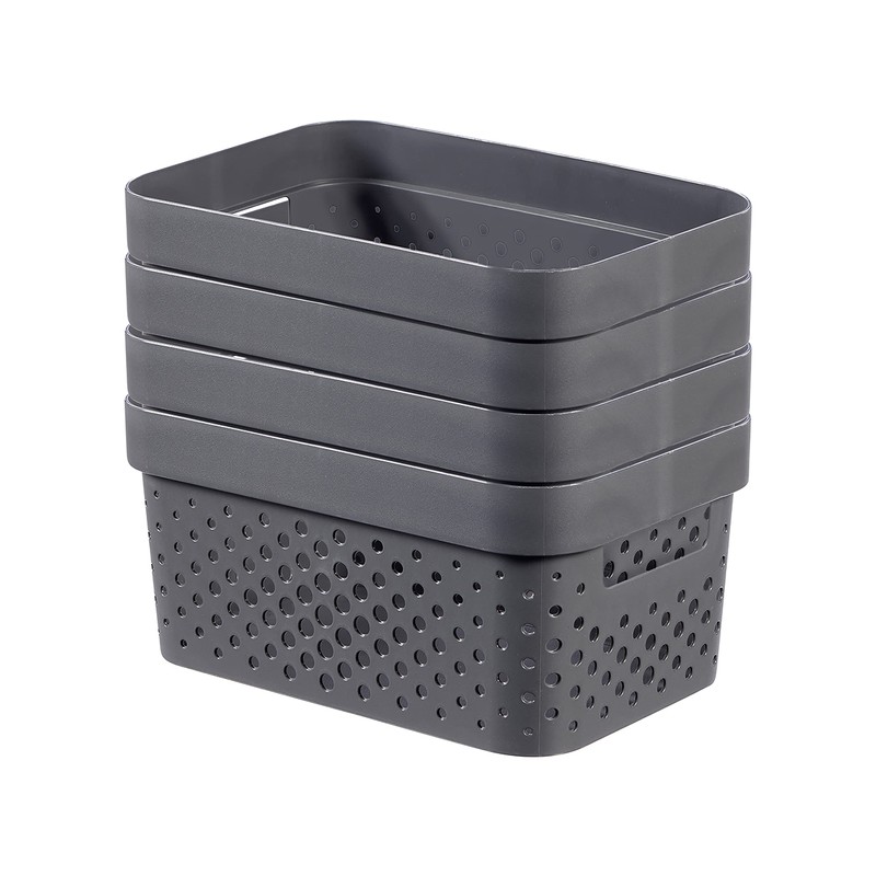 Curver Infinity Dots Set of 4 Rectangular 100% Recycled Small Storage Boxes 4.5 Litres - Grey