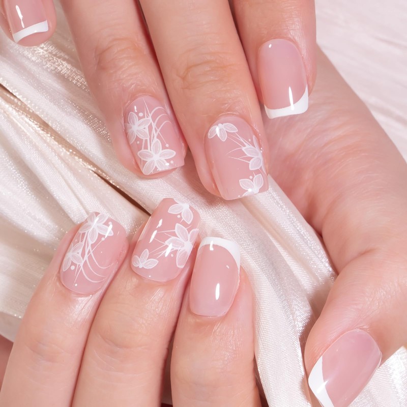 - Gel French Tip Press-On Nails:Our Handmade Gel French Tip Press-On Nails are produced using a manual process. Each nail is applied with a base coat, color gel, decorative patterns, and a top coat formulated with gel polish for a refined finish. These nails are designed to help you achieve a professional appearance quickly