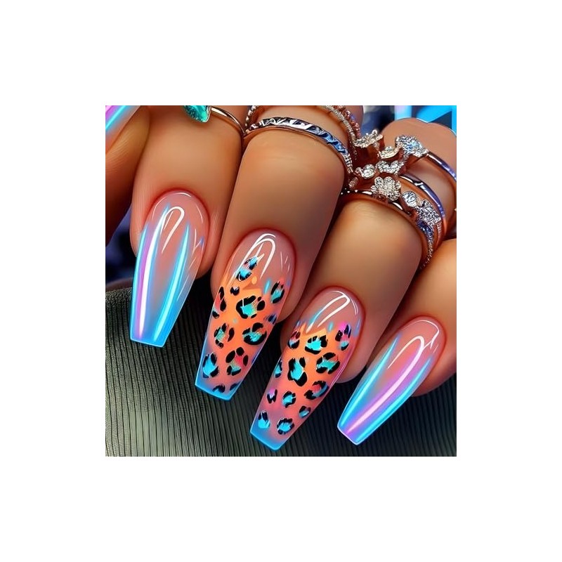 Curvlife Press On Nails Kit - Full Cover False Nail Tips with Trendy Designs, Reusable & Glue Included - Easy Application Nail Accessories for Women (leopard print, Medium)